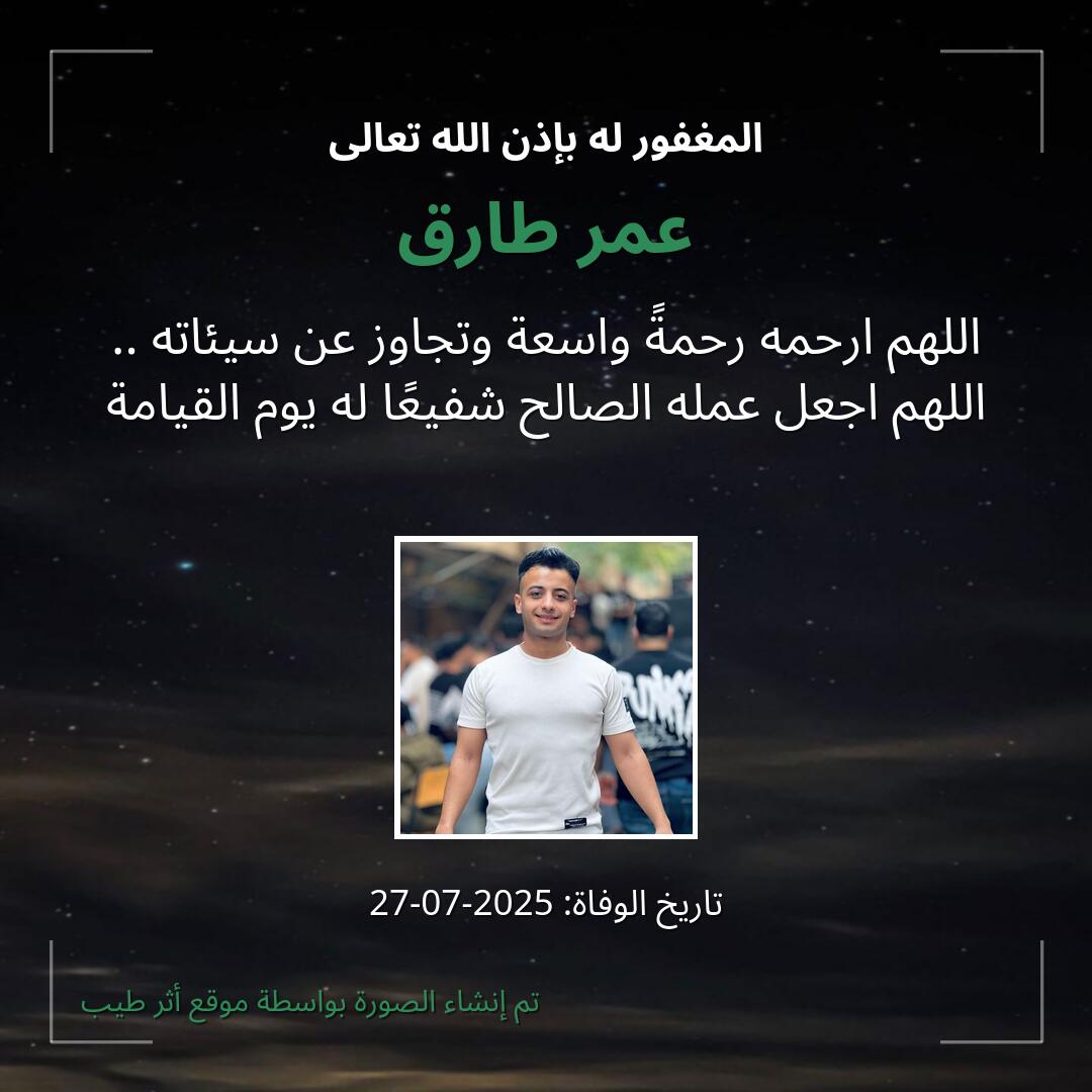 بمشاركتك هذه الصفحة، تساهم في نشر الخير والدعاء للمرحوم عمر طارق.