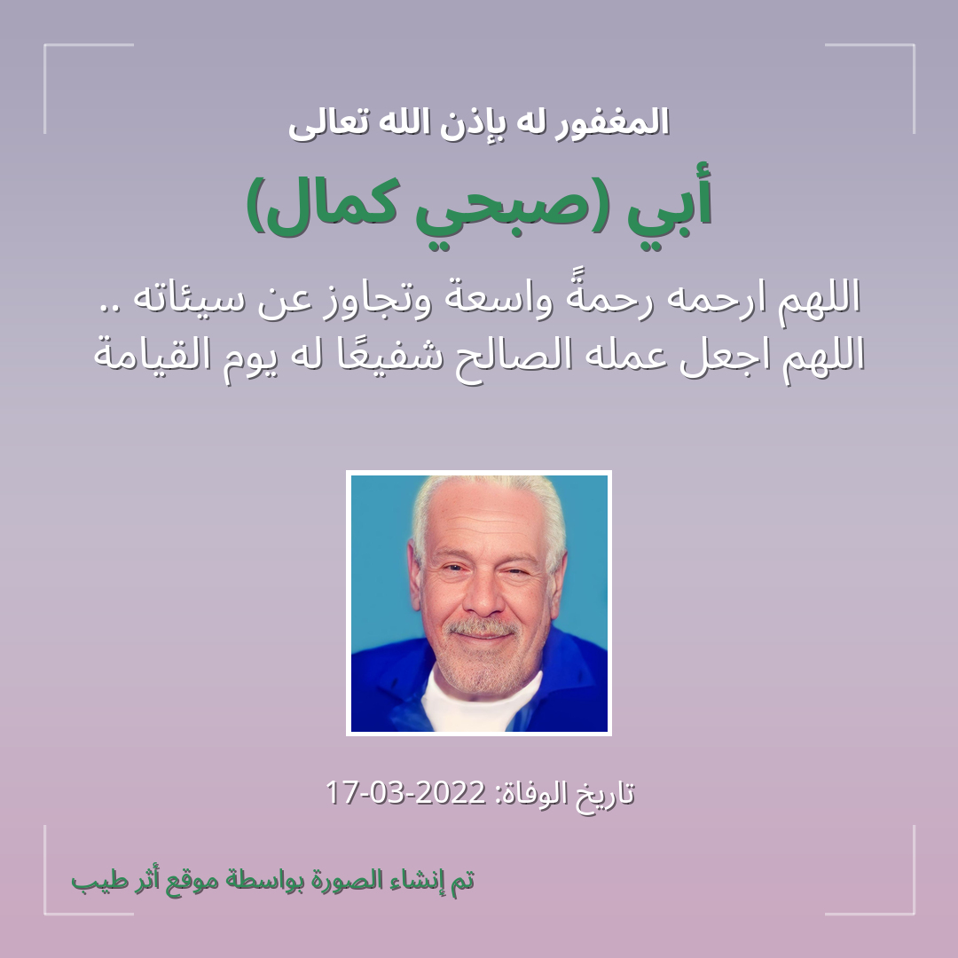 بمشاركتك هذه الصفحة، تساهم في نشر الخير والدعاء للمرحوم أبي (صبحي كمال).