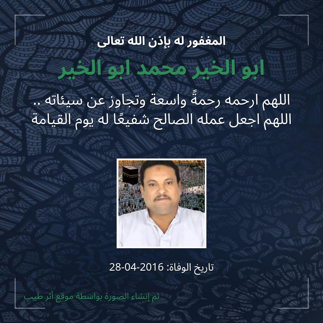 بمشاركتك هذه الصفحة، تساهم في نشر الخير والدعاء للمرحوم ابو الخير محمد ابو الخير.
