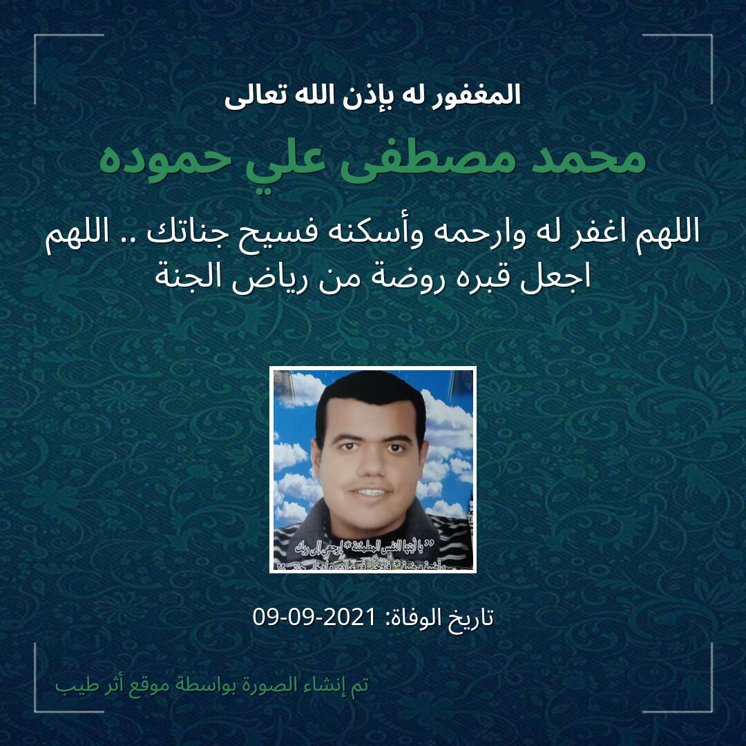 اللهمّ يمّن كتاب محمد مصطفى علي حموده ويسّر حسابه، وثقّل بالحسنات ميزانه، وثبّت على الصّراط أقدامه، وأسكنه في أعلى الجنّات، بجوار حبيبك ومصطفاك صلّى الله عليه وسلّم.