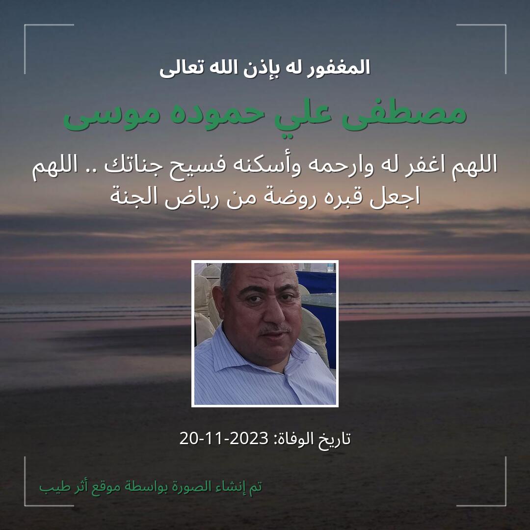 بمشاركتك هذه الصفحة، تساهم في نشر الخير والدعاء للمرحوم مصطفى علي حموده موسى.