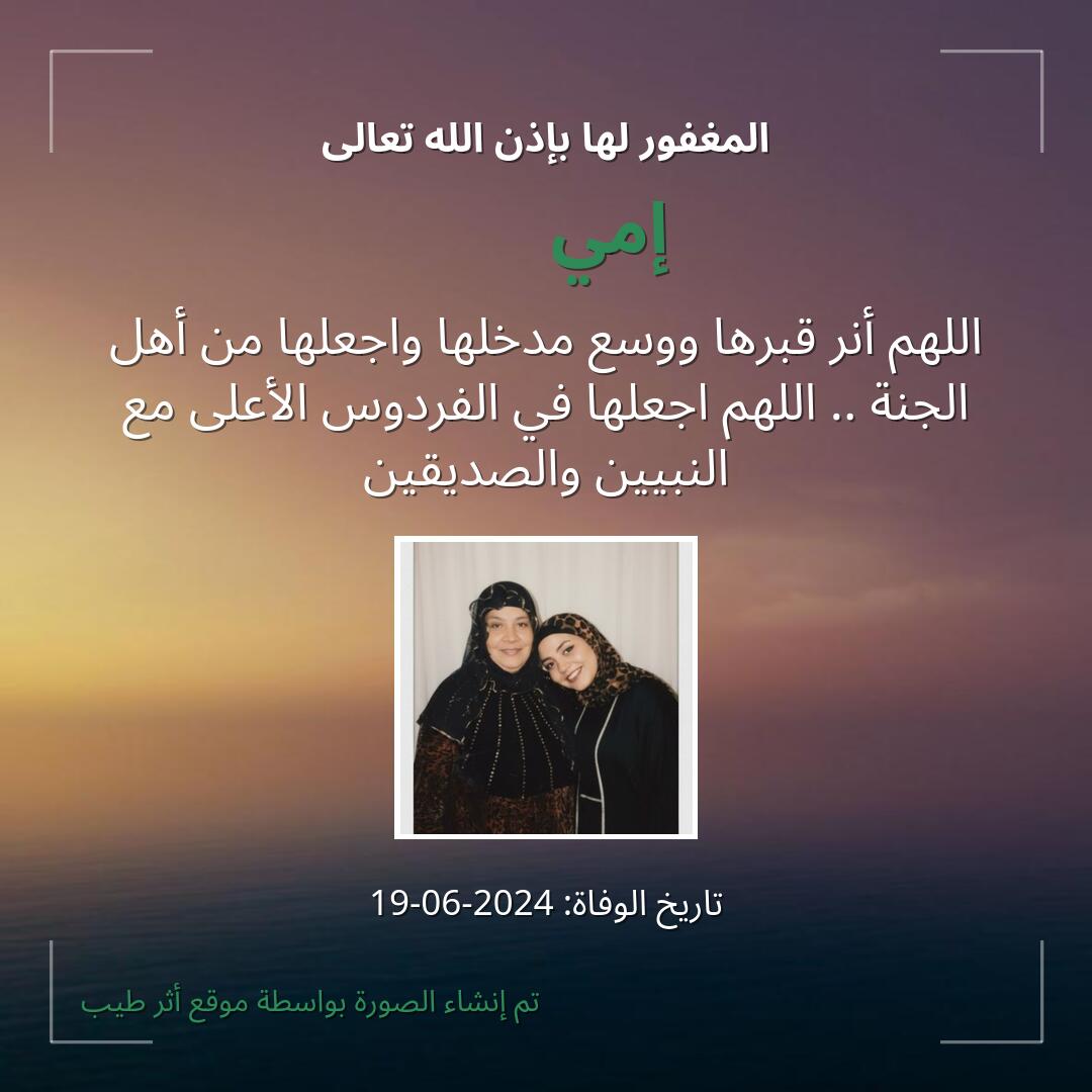 اللهم يمّن كتاب إمي💔🥹🥀 ويسّر حسابها، وثقّل بالحسنات ميزانها، وثبّت على الصراط أقدامها، وأسكنها في أعلى الجنات بجوار حبيبك ومصطفاك صلّى الله عليه وسلّم.