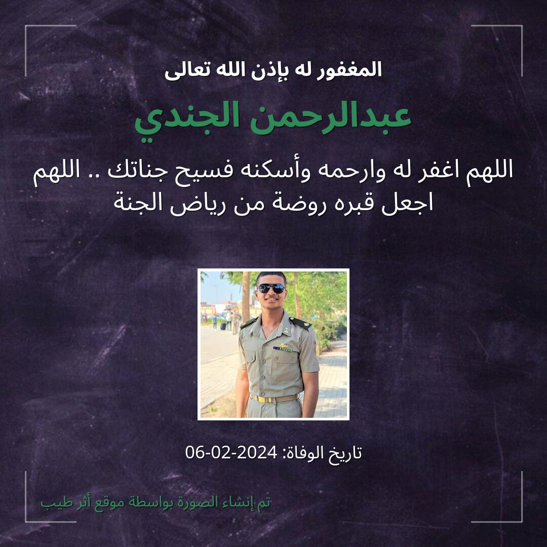 بمشاركتك هذه الصفحة، تساهم في نشر الخير والدعاء للمرحوم عبدالرحمن الجندي.