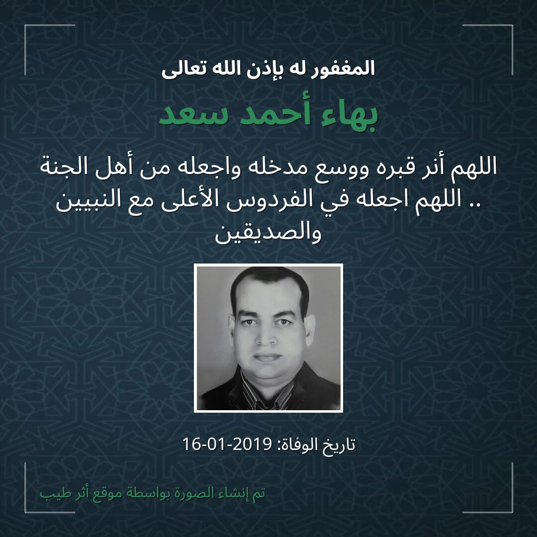 بمشاركتك هذه الصفحة، تساهم في نشر الخير والدعاء للمرحوم بهاء أحمد سعد.