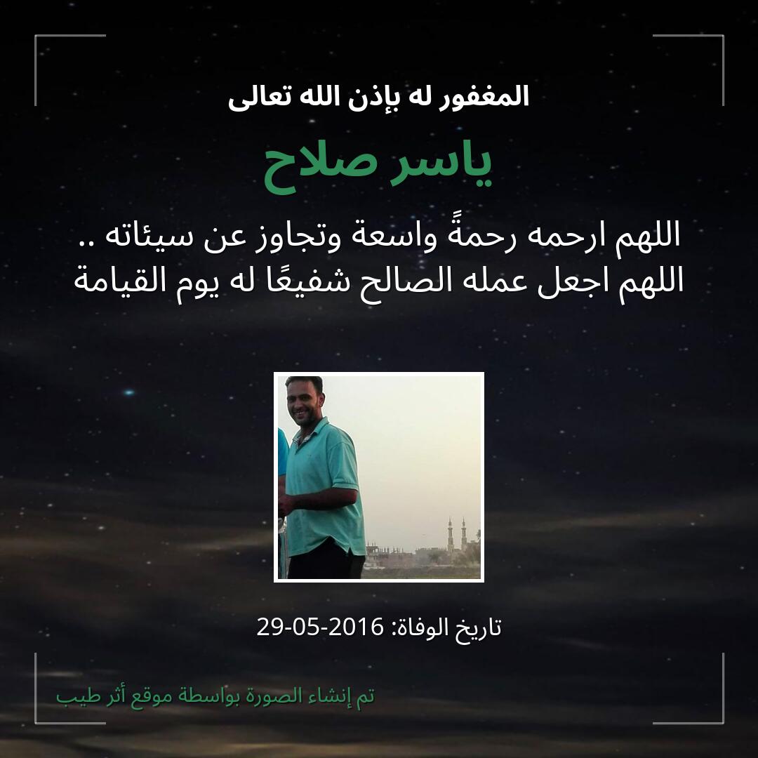 بمشاركتك هذه الصفحة، تساهم في نشر الخير والدعاء للمرحوم ياسر صلاح.