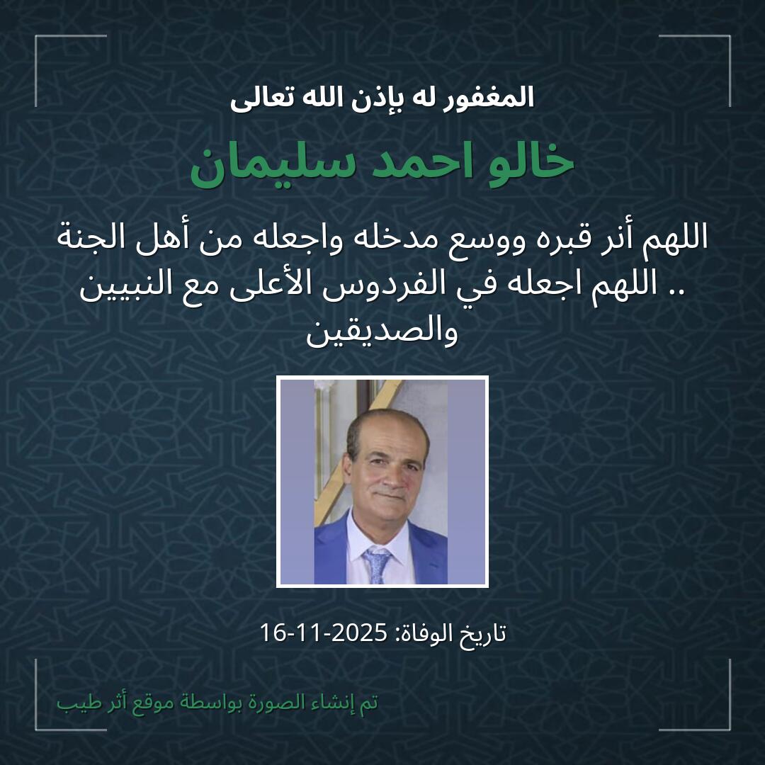 بمشاركتك هذه الصفحة، تساهم في نشر الخير والدعاء للمرحوم خالو احمد سليمان.