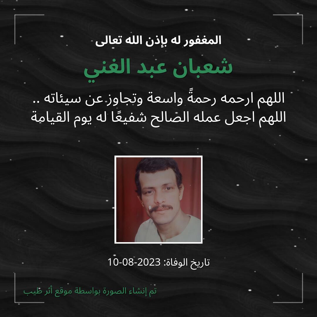بمشاركتك هذه الصفحة، تساهم في نشر الخير والدعاء للمرحوم شعبان عبد الغني.
