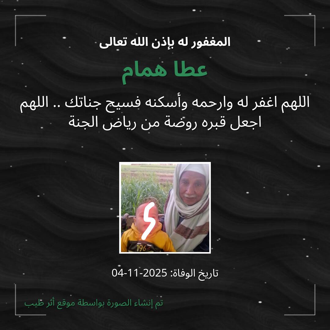 بمشاركتك هذه الصفحة، تساهم في نشر الخير والدعاء للمرحوم عطا همام.