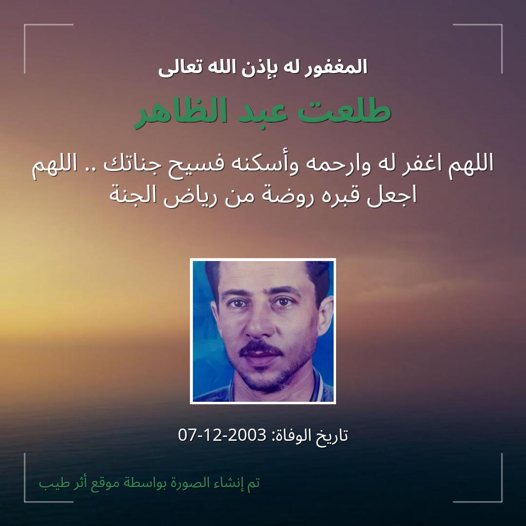 بمشاركتك هذه الصفحة، تساهم في نشر الخير والدعاء للمرحوم طلعت عبد الظاهر.