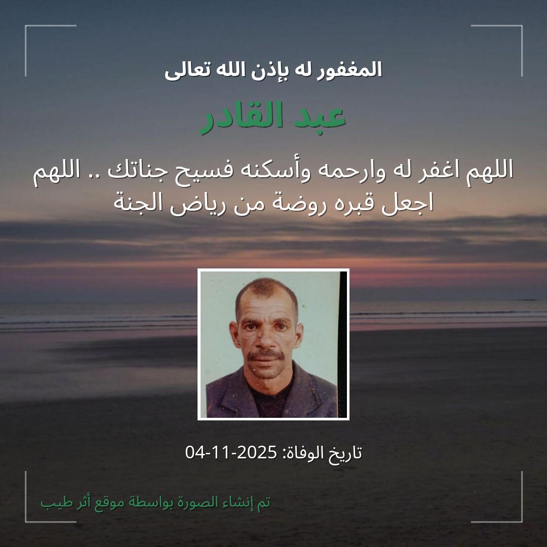 بمشاركتك هذه الصفحة، تساهم في نشر الخير والدعاء للمرحوم عبد القادر.