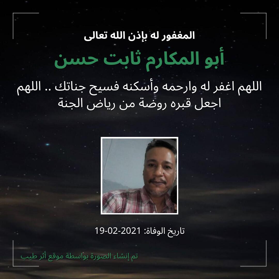 بمشاركتك هذه الصفحة، تساهم في نشر الخير والدعاء للمرحوم أبو المكارم ثابت حسن.