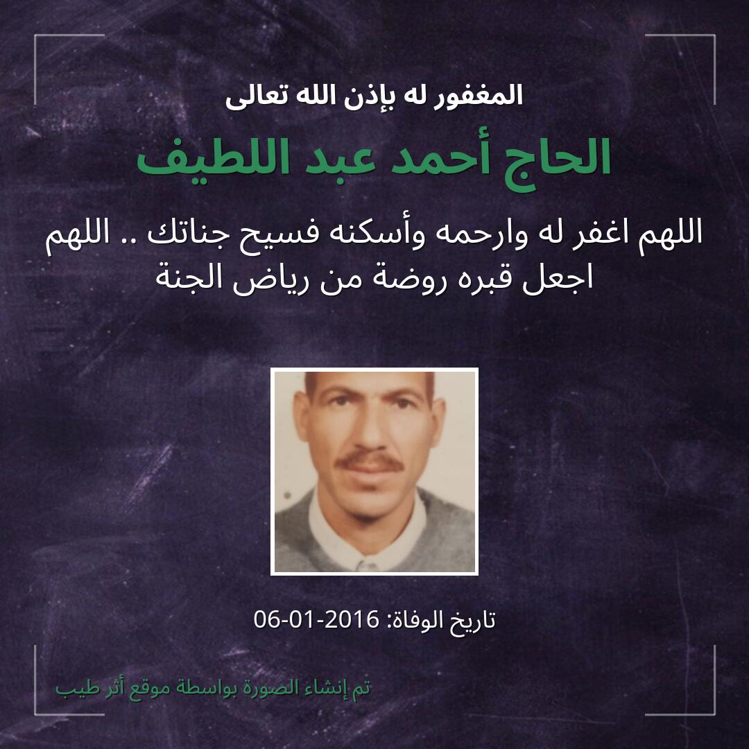 بمشاركتك هذه الصفحة، تساهم في نشر الخير والدعاء للمرحوم الحاج أحمد عبد اللطيف.