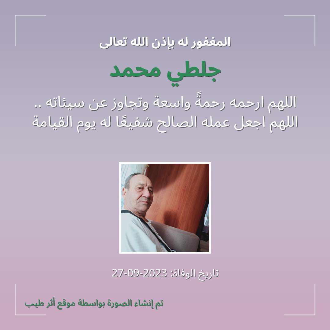 بمشاركتك هذه الصفحة، تساهم في نشر الخير والدعاء للمرحوم جلطي محمد.