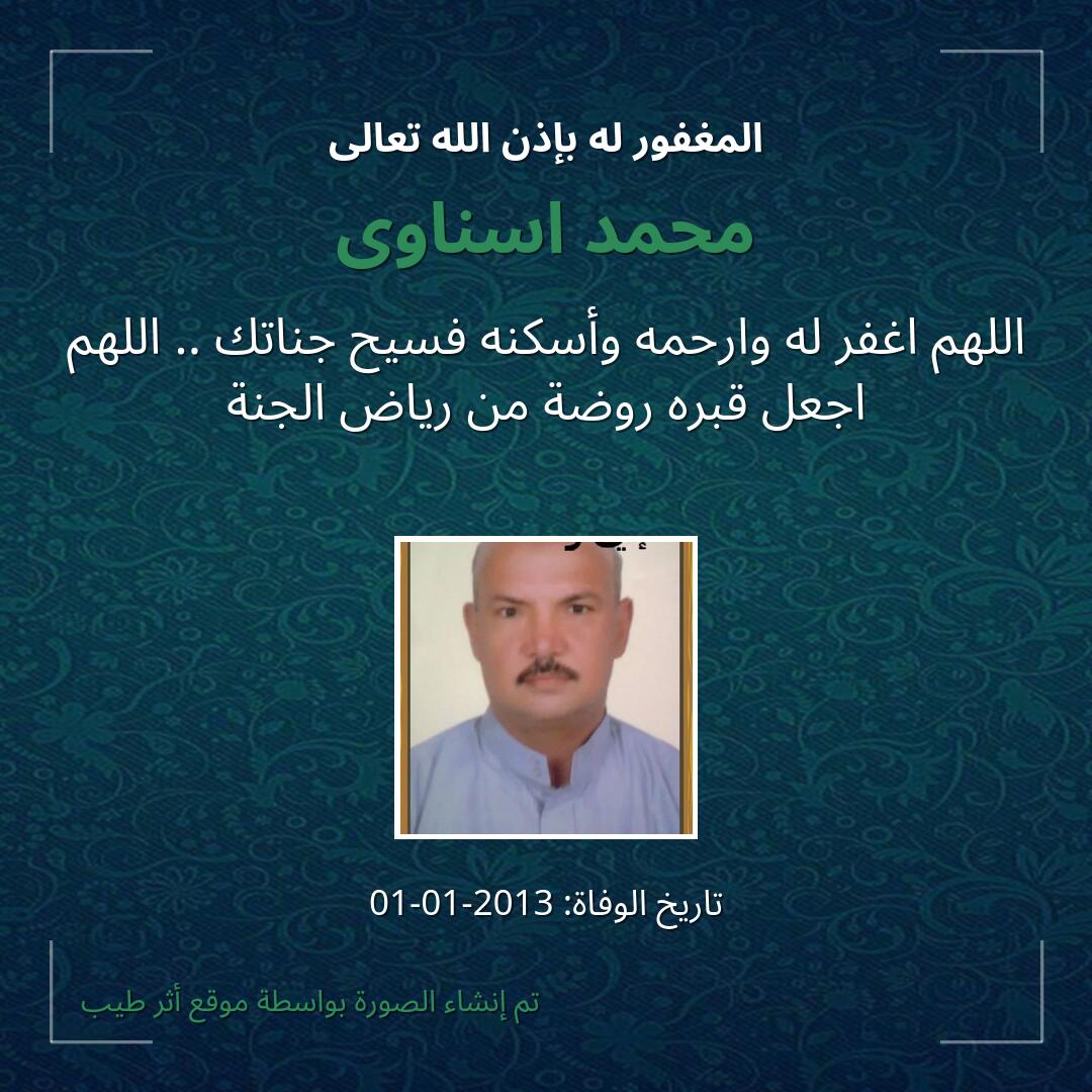 اللهمّ يمّن كتاب محمد اسناوى ويسّر حسابه، وثقّل بالحسنات ميزانه، وثبّت على الصّراط أقدامه، وأسكنه في أعلى الجنّات، بجوار حبيبك ومصطفاك صلّى الله عليه وسلّم.