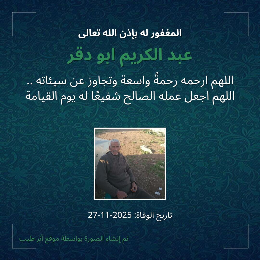 بمشاركتك هذه الصفحة، تساهم في نشر الخير والدعاء للمرحوم عبد الكريم ابو دقر.