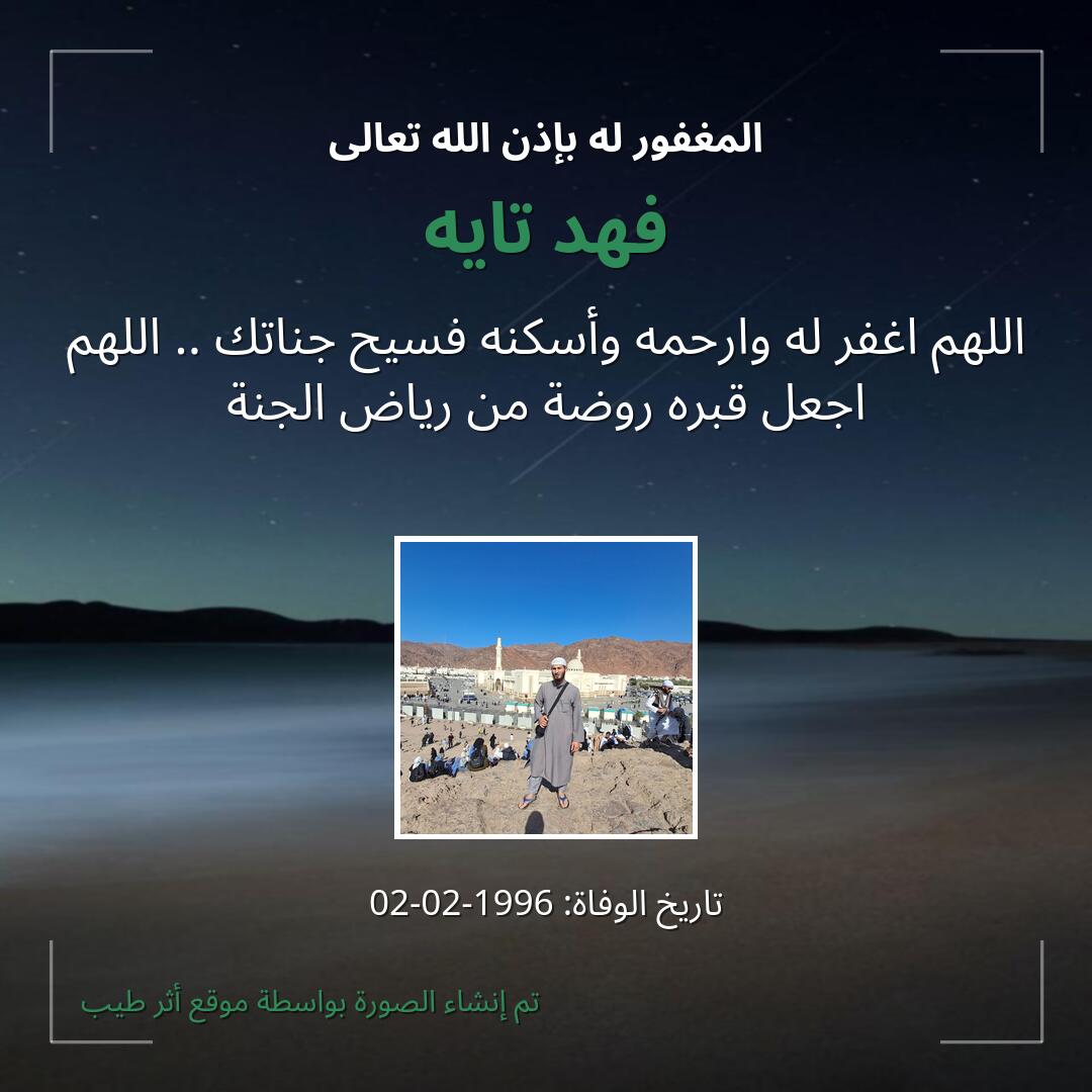 بمشاركتك هذه الصفحة، تساهم في نشر الخير والدعاء للمرحوم فهد تايه.