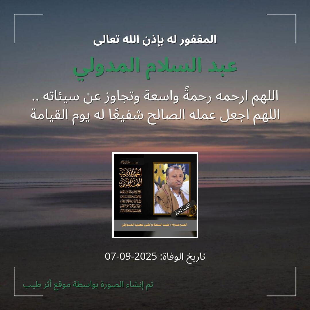 🌱 اللهم هب مثل ثواب هذا العمل إلى روح عبد السلام المدولي 🌱
