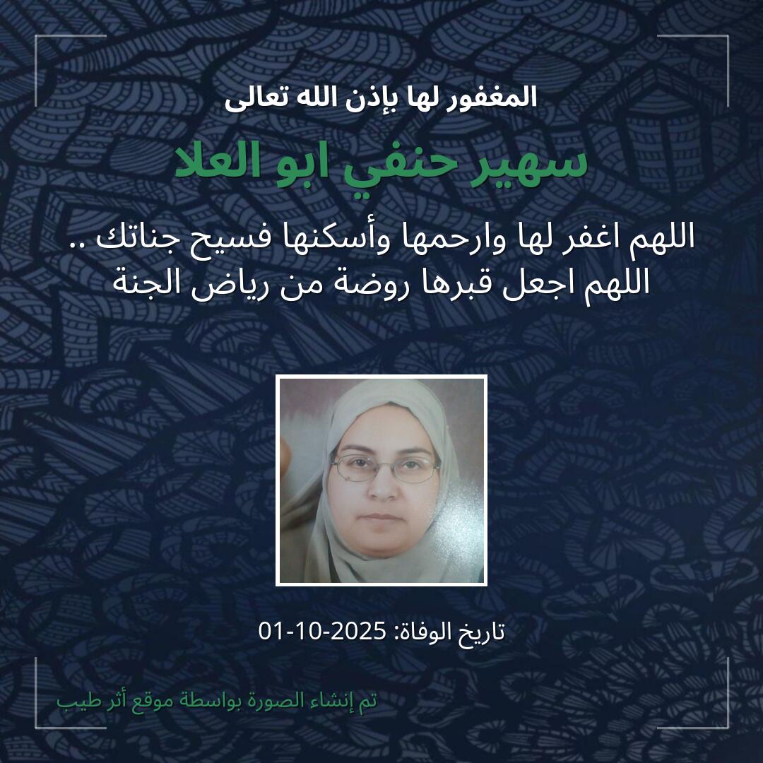 بمشاركتك هذه الصفحة، تساهم في نشر الخير والدعاء للمرحومة سهير حنفي ابو العلا.