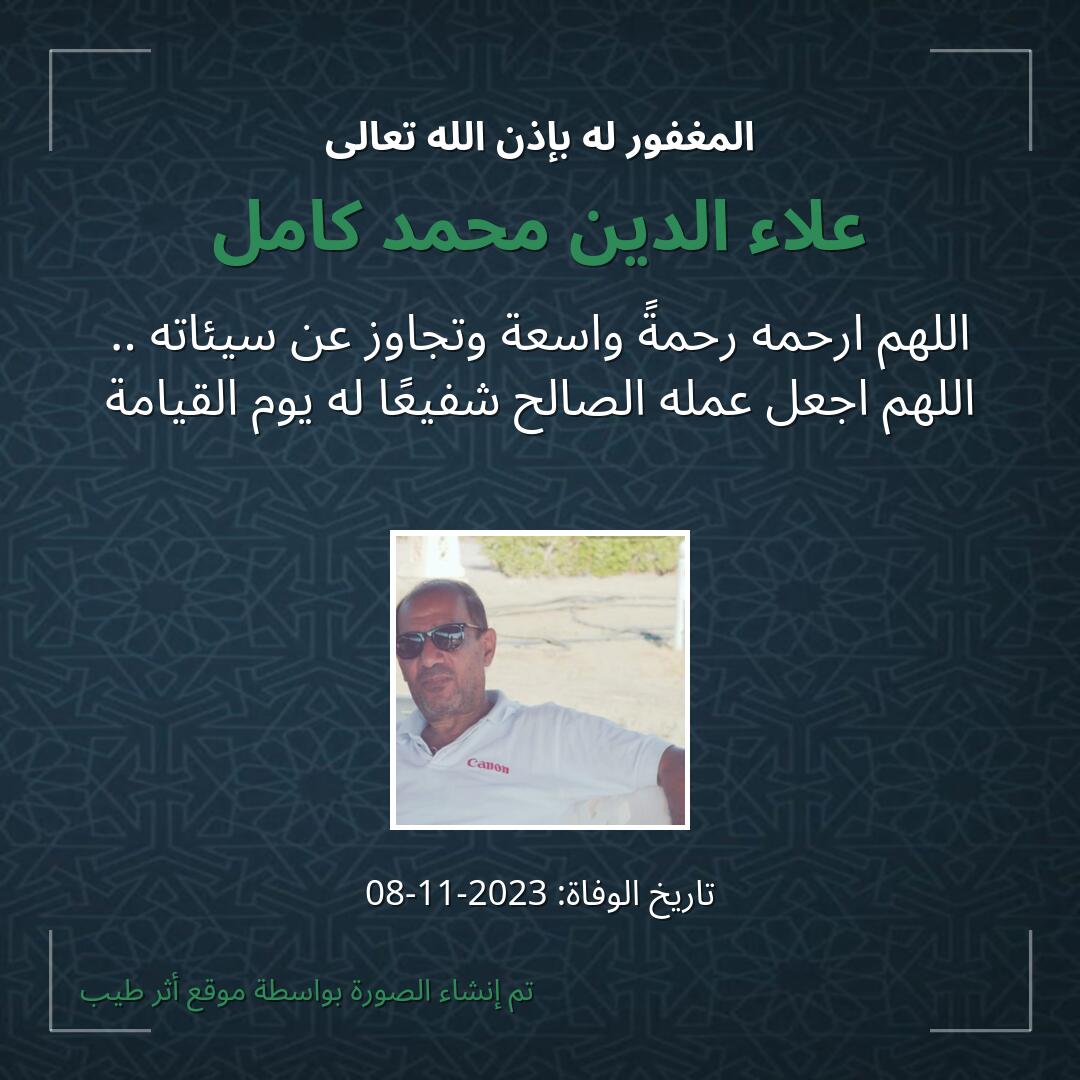 بمشاركتك هذه الصفحة، تساهم في نشر الخير والدعاء للمرحوم علاء الدين محمد كامل.