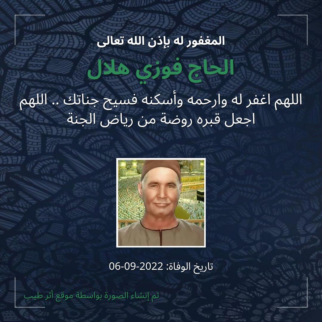 اللهمّ يمّن كتاب الحاج فوزي هلال ويسّر حسابه، وثقّل بالحسنات ميزانه، وثبّت على الصّراط أقدامه، وأسكنه في أعلى الجنّات، بجوار حبيبك ومصطفاك صلّى الله عليه وسلّم.