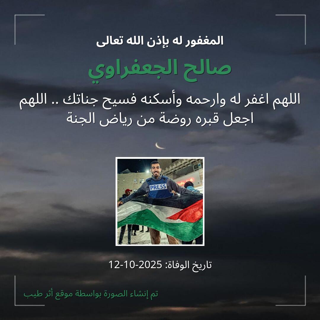 بمشاركتك هذه الصفحة، تساهم في نشر الخير والدعاء للمرحوم صالح الجعفراوي.