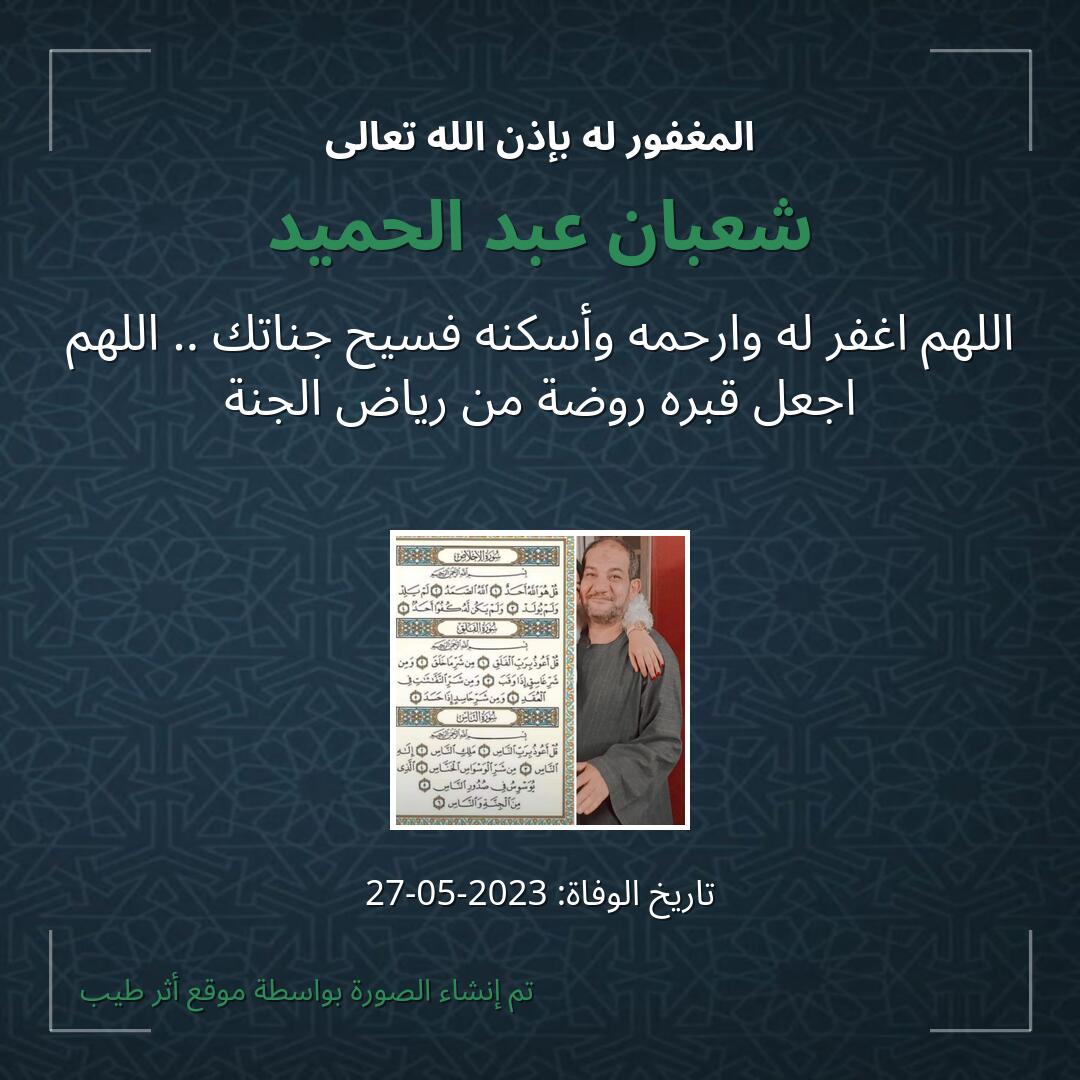 🌱 اللهم هب مثل ثواب هذا العمل إلى روح شعبان عبد الحميد 🌱