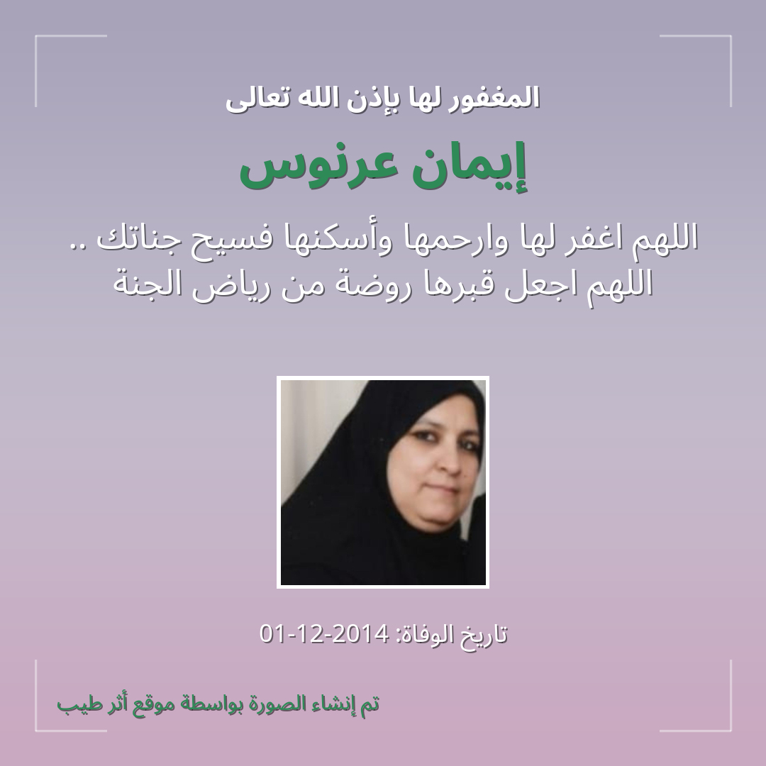 بمشاركتك هذه الصفحة، تساهم في نشر الخير والدعاء للمرحومة إيمان عرنوس.