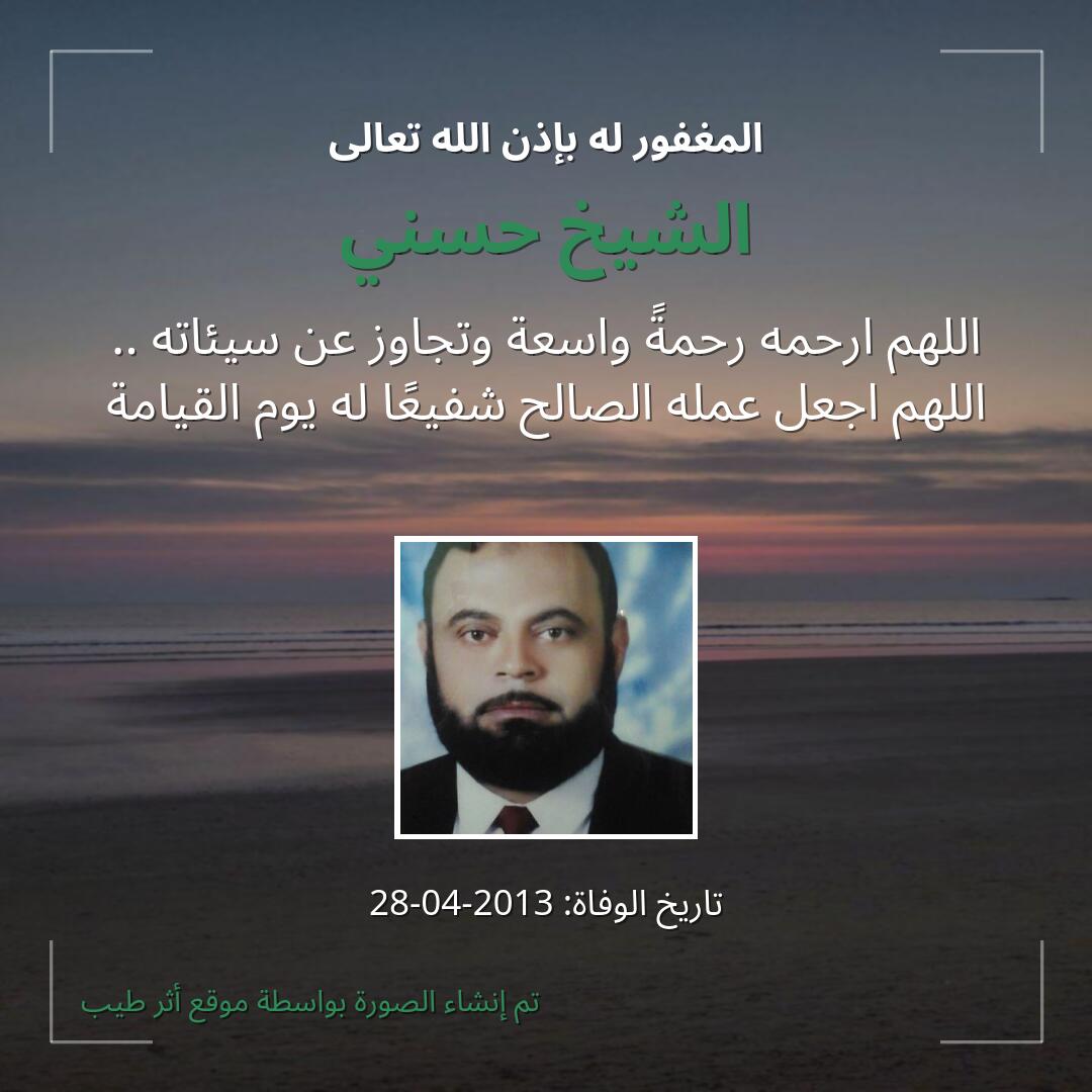 بمشاركتك هذه الصفحة، تساهم في نشر الخير والدعاء للمرحوم الشيخ حسني.