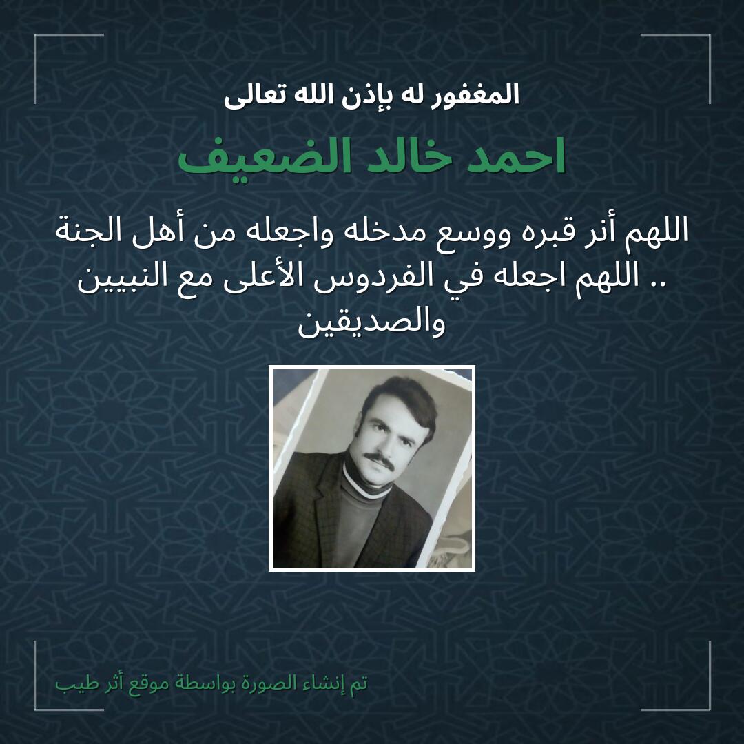 بمشاركتك هذه الصفحة، تساهم في نشر الخير والدعاء للمرحوم احمد خالد الضعيف.