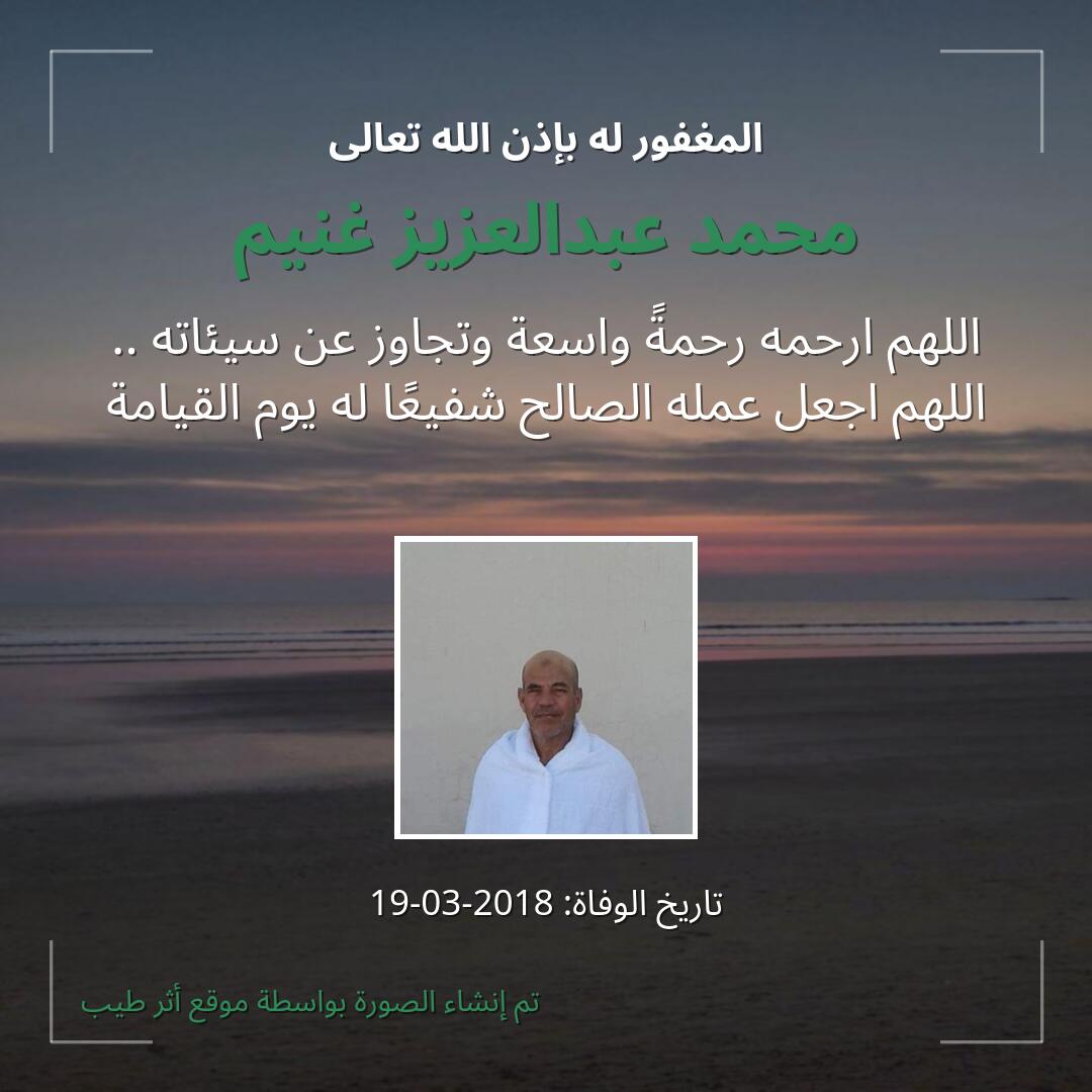 بمشاركتك هذه الصفحة، تساهم في نشر الخير والدعاء للمرحوم محمد عبدالعزيز غنيم.