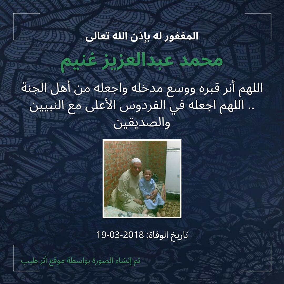 بمشاركتك هذه الصفحة، تساهم في نشر الخير والدعاء للمرحوم محمد عبدالعزيز غنيم.