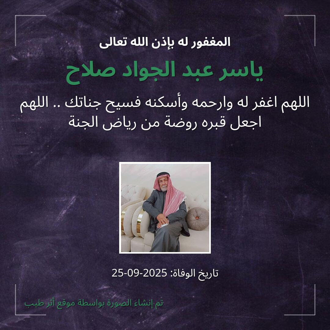 بمشاركتك هذه الصفحة، تساهم في نشر الخير والدعاء للمرحوم ياسر عبد الجواد صلاح.
