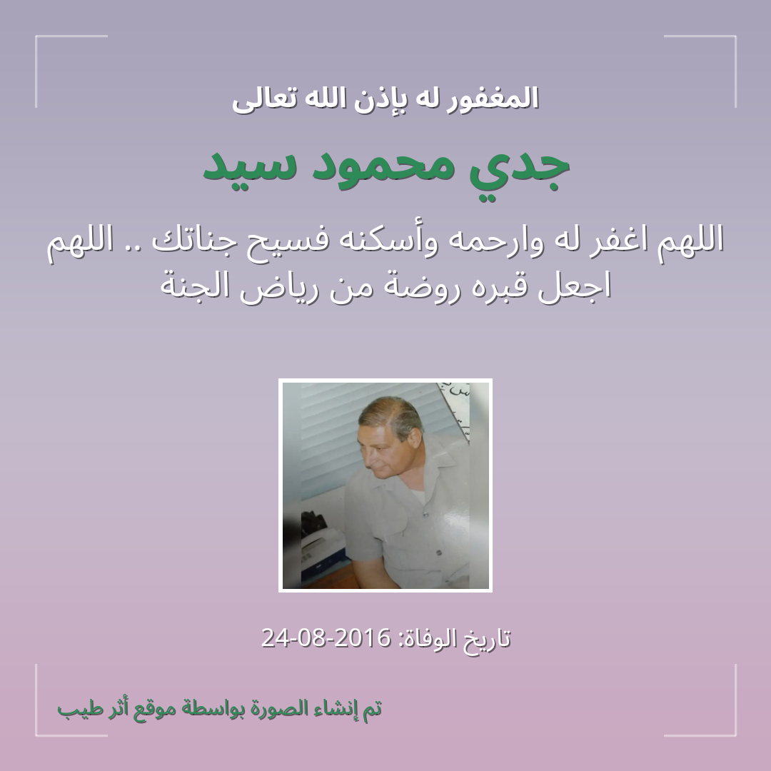 بمشاركتك هذه الصفحة، تساهم في نشر الخير والدعاء للمرحوم جدي محمود سيد.