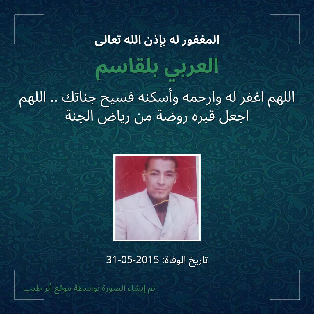 بمشاركتك هذه الصفحة، تساهم في نشر الخير والدعاء للمرحوم العربي بلقاسم.