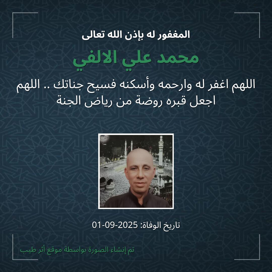 بمشاركتك هذه الصفحة، تساهم في نشر الخير والدعاء للمرحوم محمد علي الالفي.