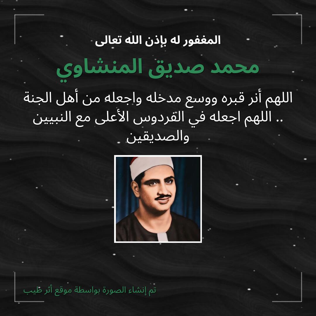 اللهم يا حنان يا منان يا واسع الغفران اغفر لـ محمد صديق المنشاوي وارحمه وعافه واعف عنه، وأكرم نزله ووسع مدخله، وأغسله بالماء والثلج والبرد، ونقه من الذنوب والخطايا كما ينقى الثوب الأبيض من الدنس.