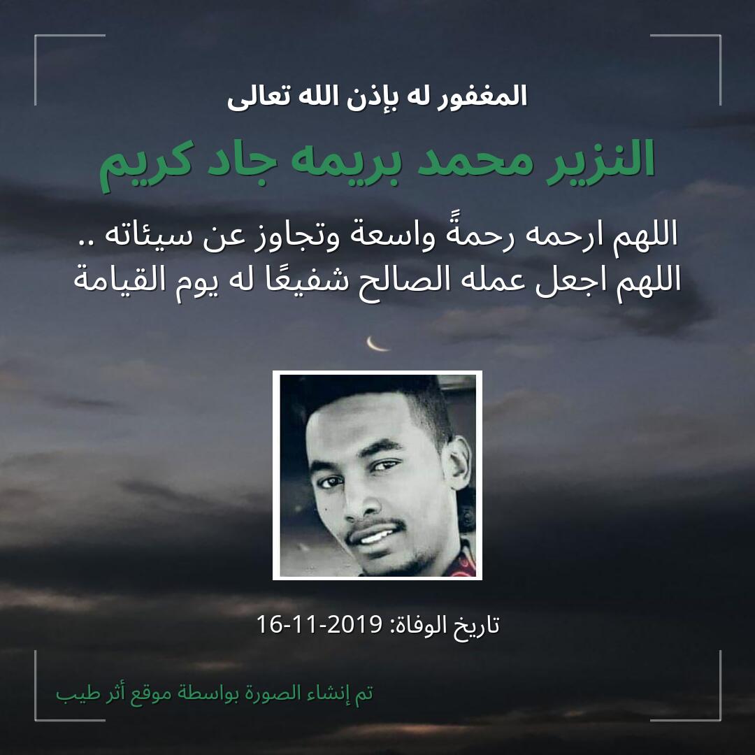 بمشاركتك هذه الصفحة، تساهم في نشر الخير والدعاء للمرحوم النزير محمد بريمه جاد كريم.