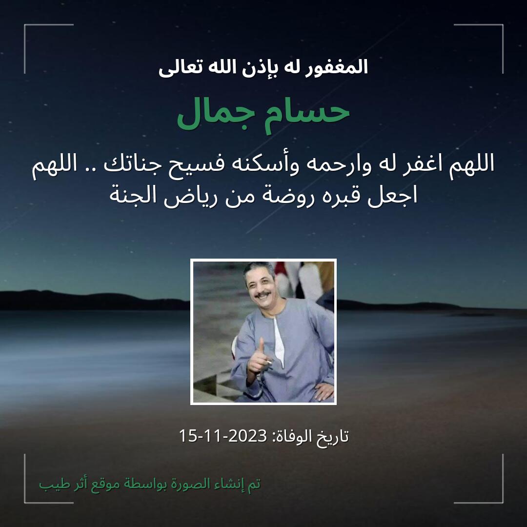 بمشاركتك هذه الصفحة، تساهم في نشر الخير والدعاء للمرحوم حسام جمال.
