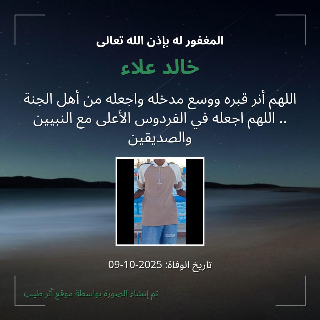 بمشاركتك هذه الصفحة، تساهم في نشر الخير والدعاء للمرحوم خالد علاء.