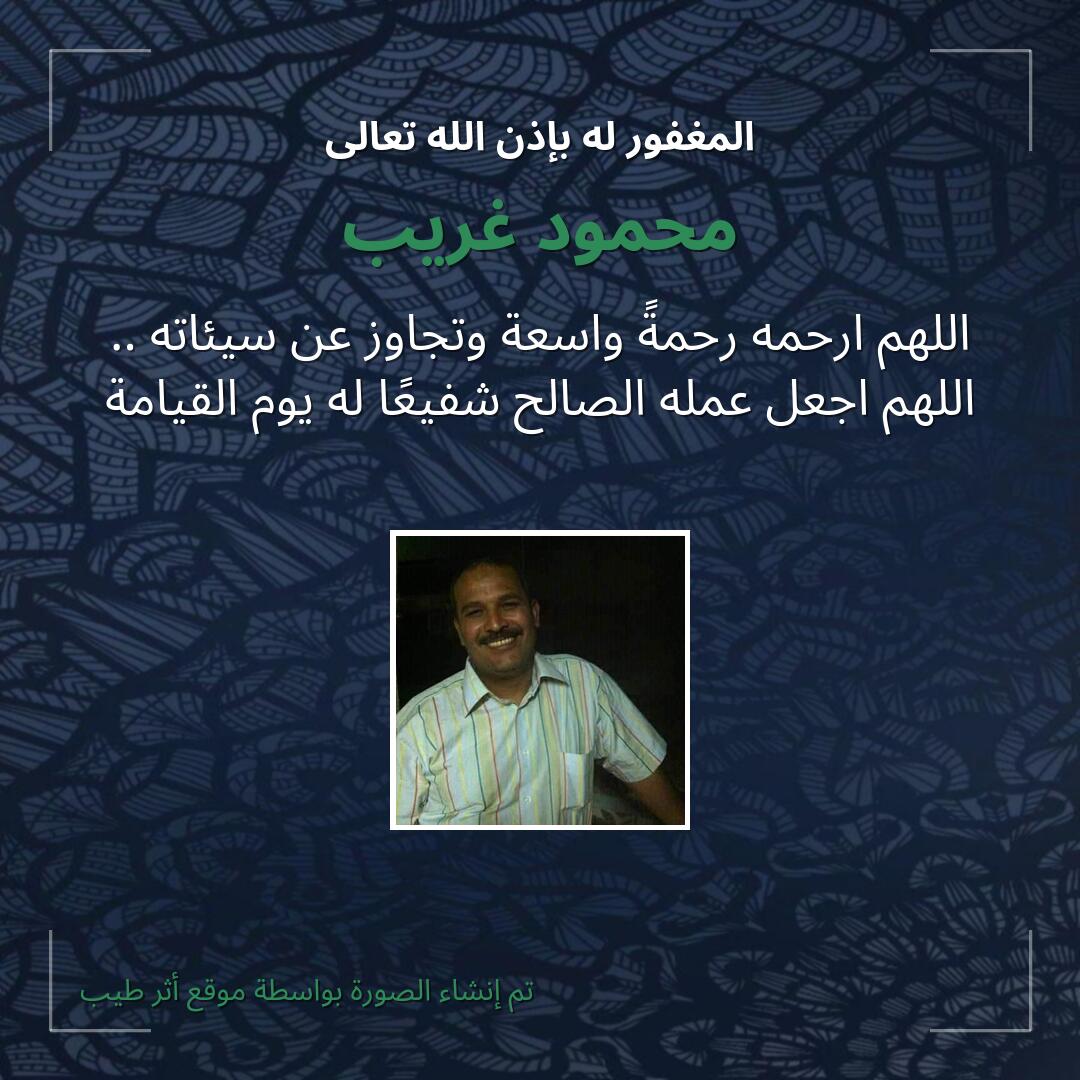 بمشاركتك هذه الصفحة، تساهم في نشر الخير والدعاء للمرحوم محمود غريب.