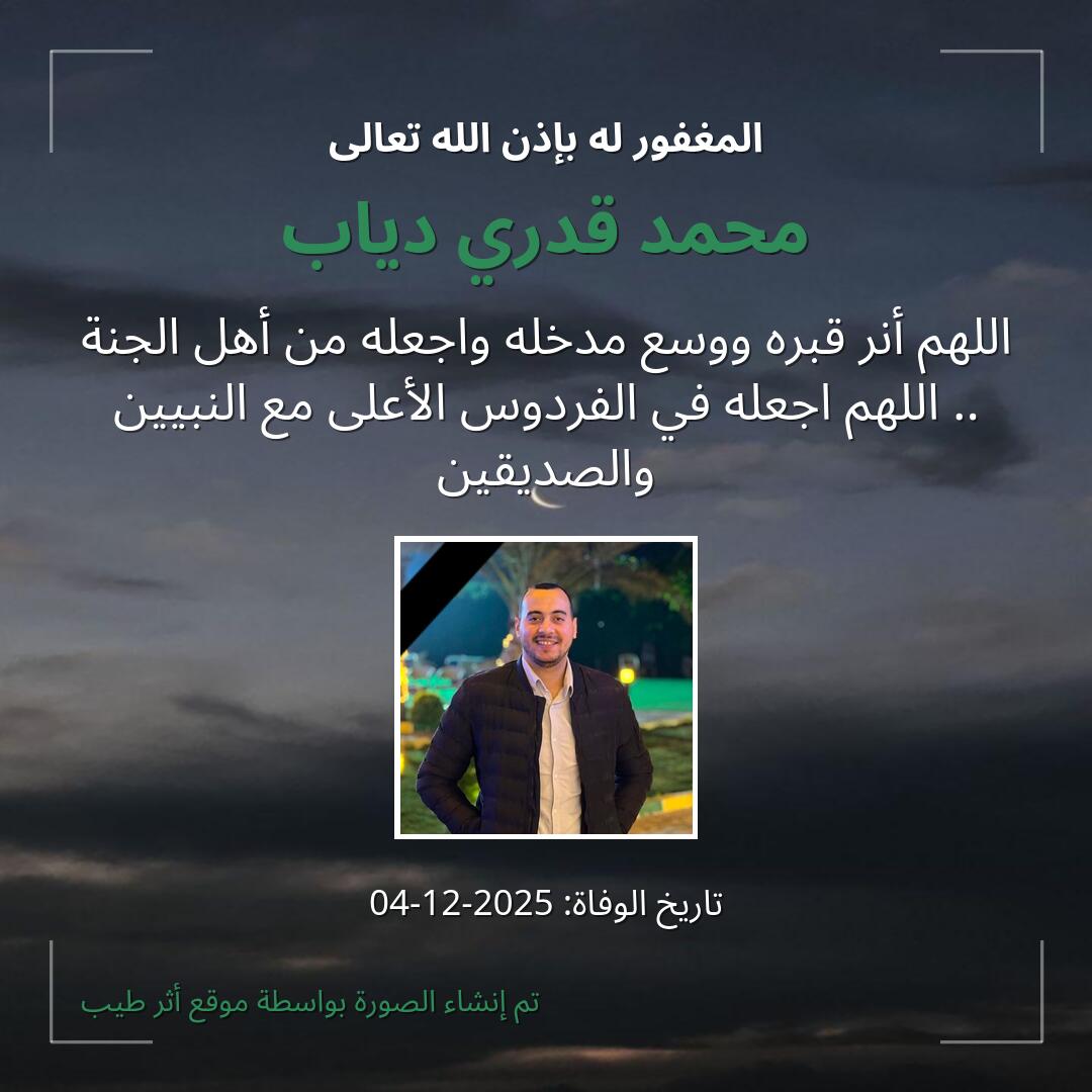 بمشاركتك هذه الصفحة، تساهم في نشر الخير والدعاء للمرحوم محمد قدري دياب.