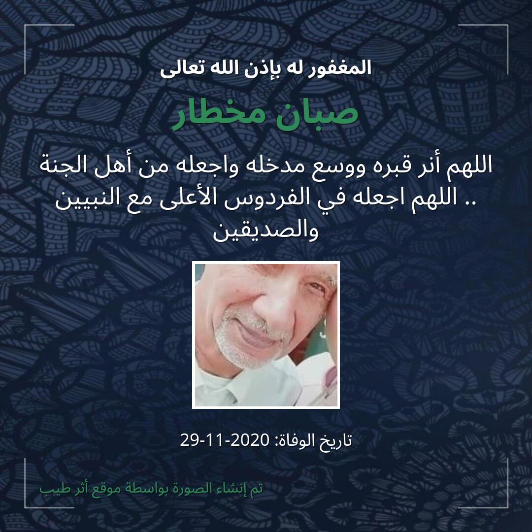 بمشاركتك هذه الصفحة، تساهم في نشر الخير والدعاء للمرحوم صبان مخطار.