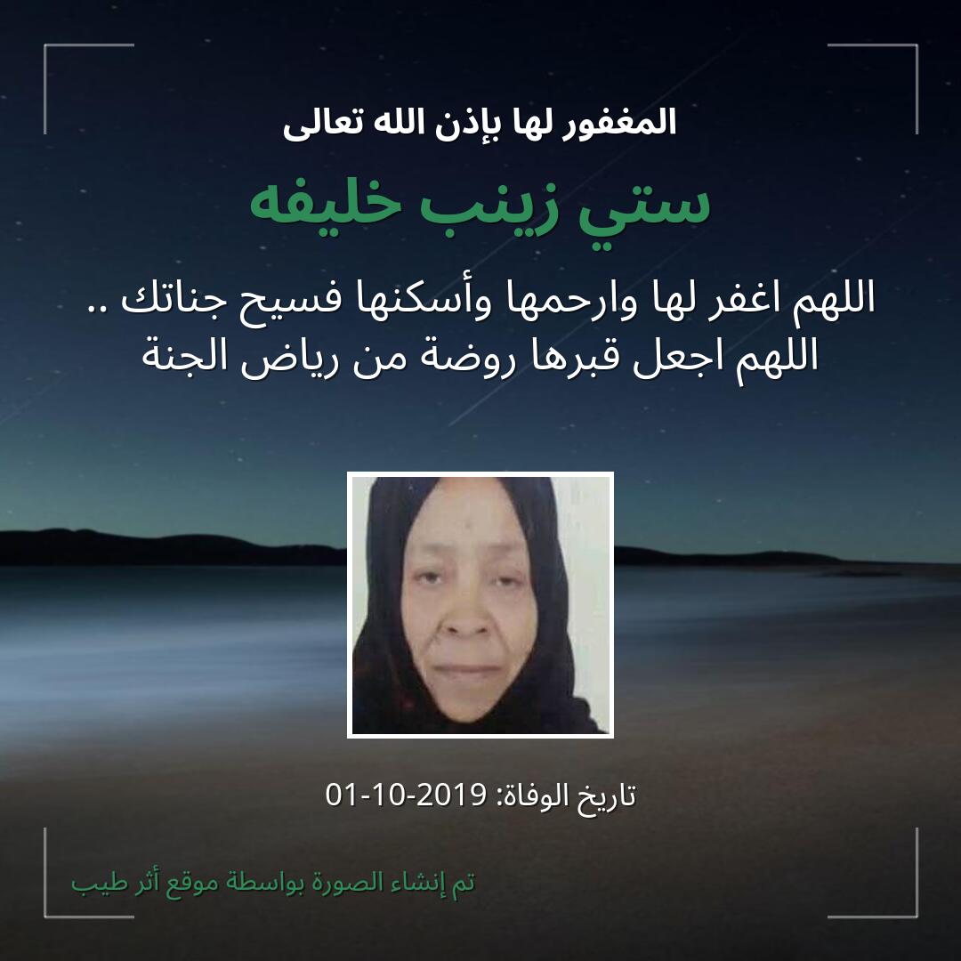 بمشاركتك هذه الصفحة، تساهم في نشر الخير والدعاء للمرحومة ستي زينب خليفه.