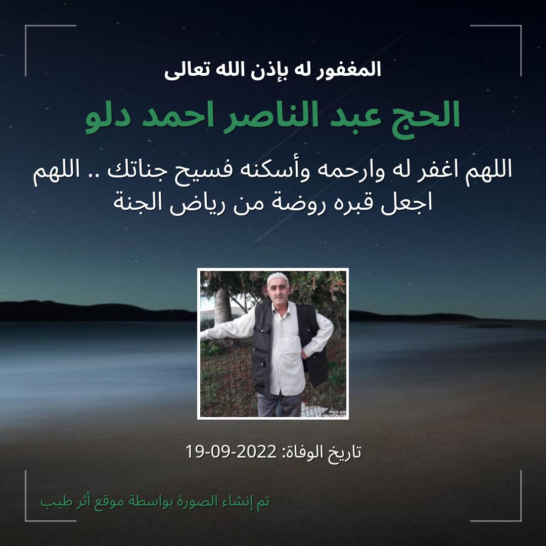 بمشاركتك هذه الصفحة، تساهم في نشر الخير والدعاء للمرحوم الحج عبد الناصر احمد دلو.