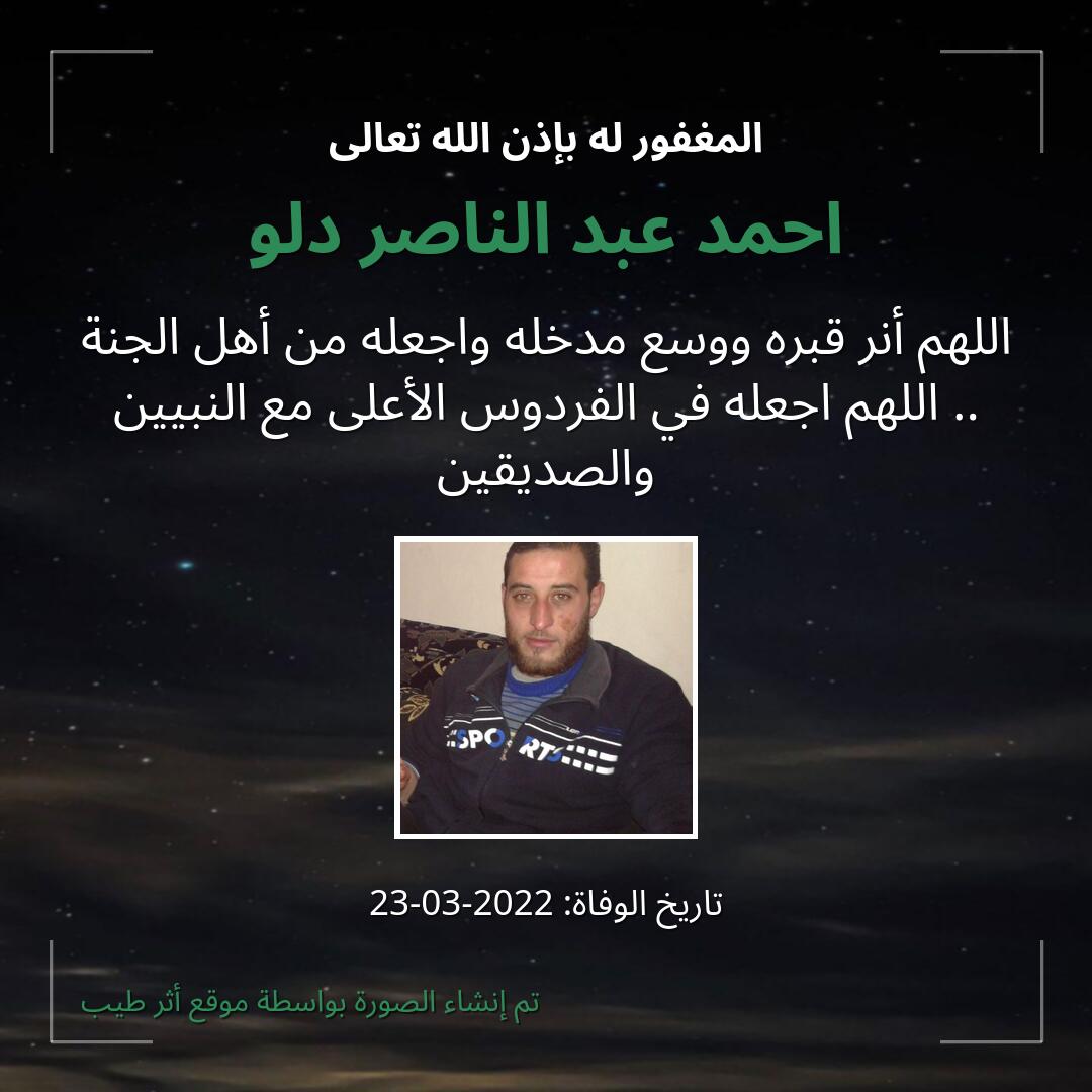 بمشاركتك هذه الصفحة، تساهم في نشر الخير والدعاء للمرحوم احمد عبد الناصر دلو.
