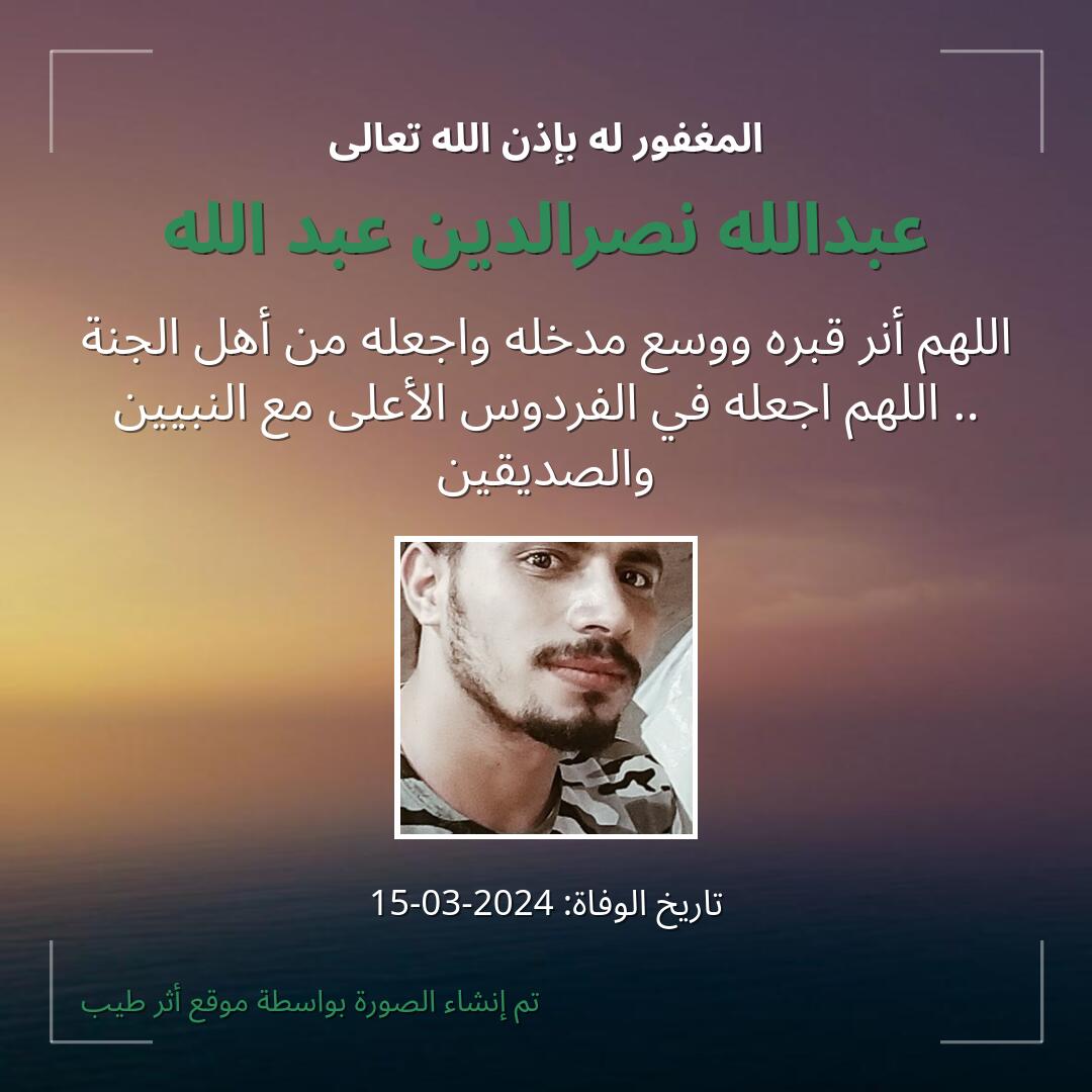 بمشاركتك هذه الصفحة، تساهم في نشر الخير والدعاء للمرحوم عبدالله نصرالدين عبد الله.