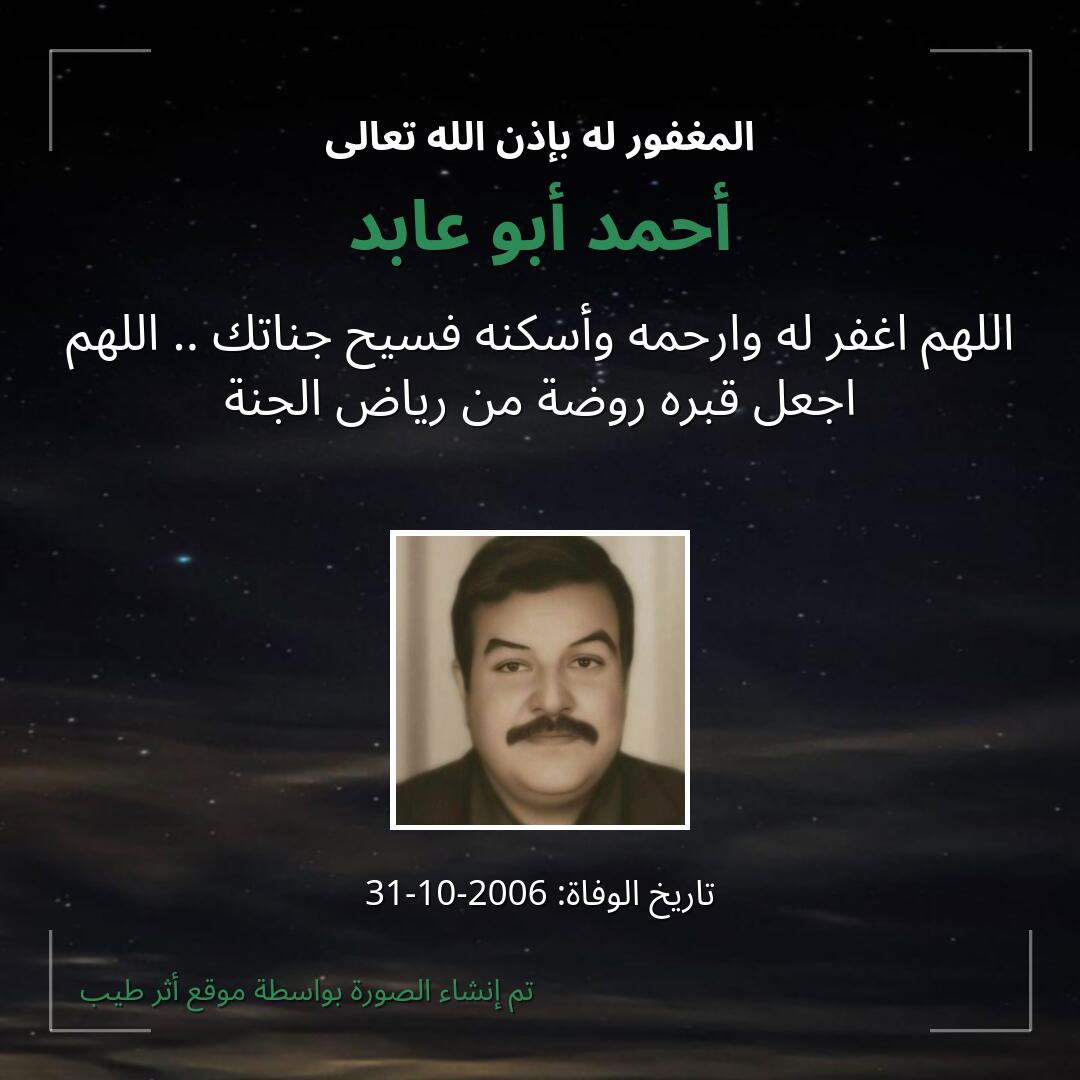 بمشاركتك هذه الصفحة، تساهم في نشر الخير والدعاء للمرحوم أحمد أبو عابد.