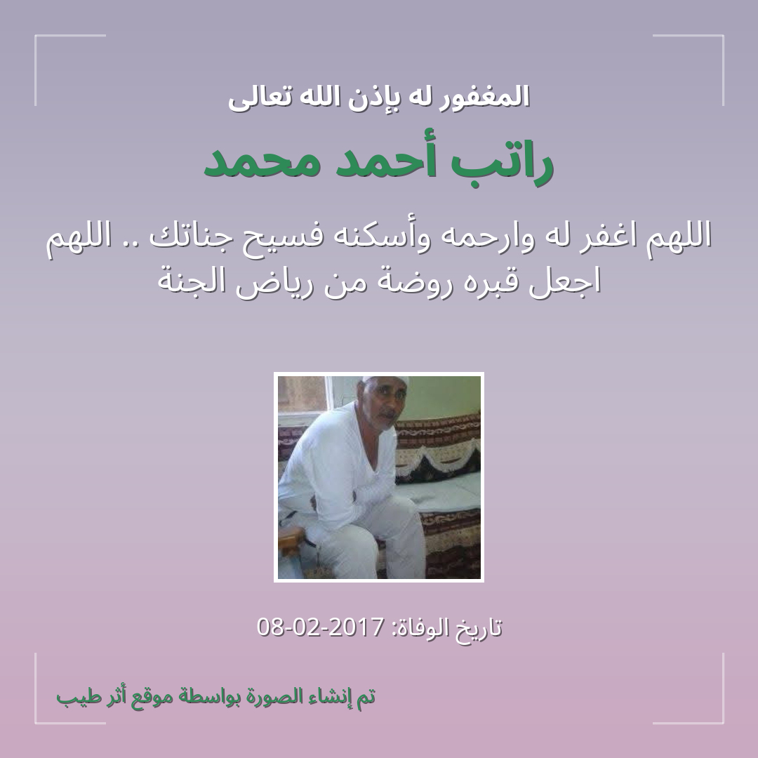بمشاركتك هذه الصفحة، تساهم في نشر الخير والدعاء للمرحوم راتب أحمد محمد.