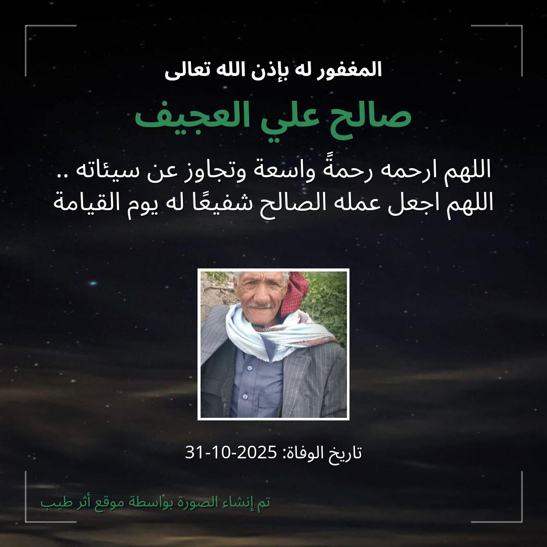 بمشاركتك هذه الصفحة، تساهم في نشر الخير والدعاء للمرحوم صالح علي العجيف.