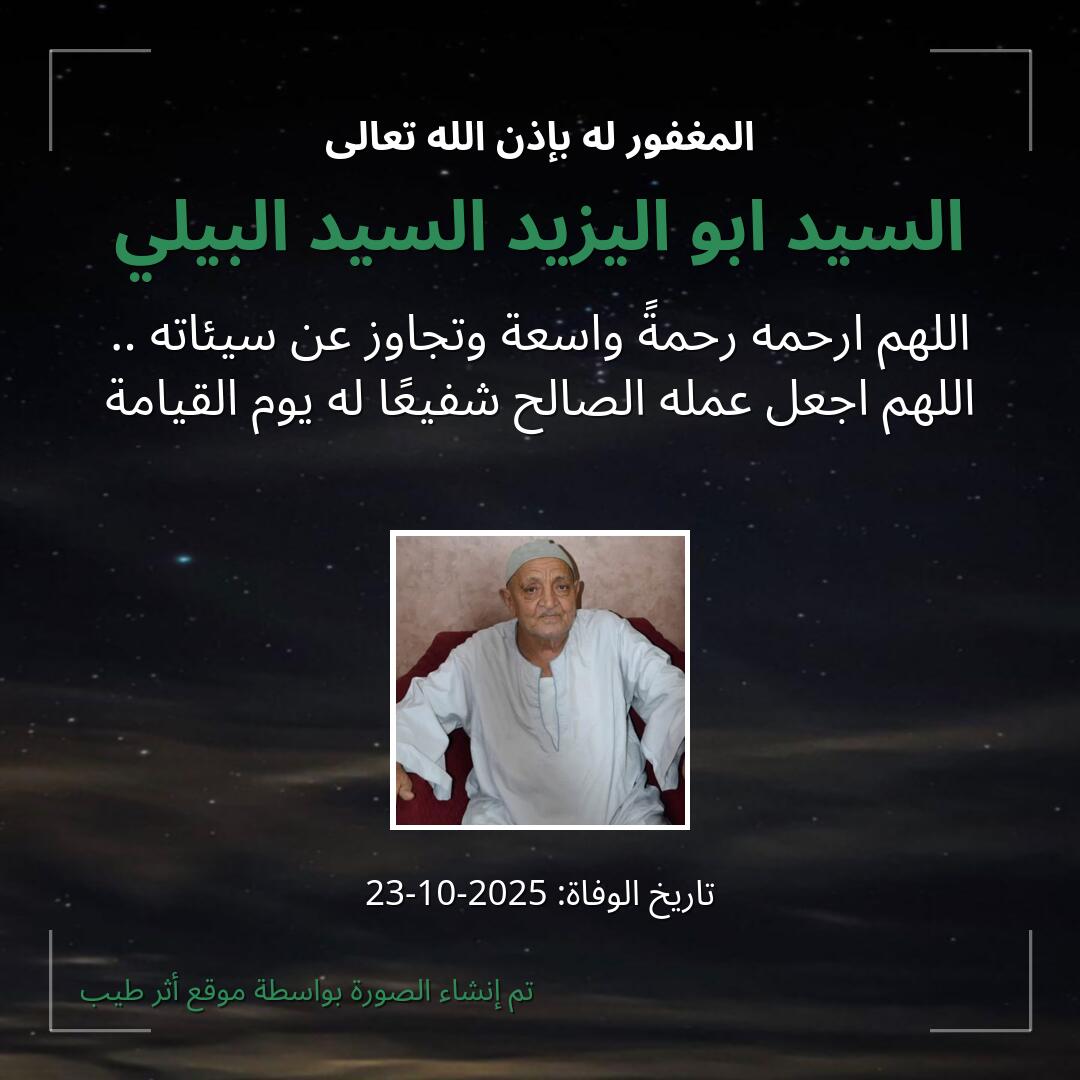 بمشاركتك هذه الصفحة، تساهم في نشر الخير والدعاء للمرحوم السيد ابو اليزيد السيد البيلي.